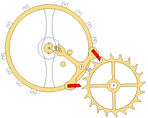 A few years later, it was already possible to realistically simulate a mechanism with the complexity of a complete mechanical watch with the SILUX software. In this simulation, even the physical simulation of the individual interacting cogs was calculated in detail. The illustration shows part of a model of a "Reverso" watch made by Jaeger-LeCoultre.